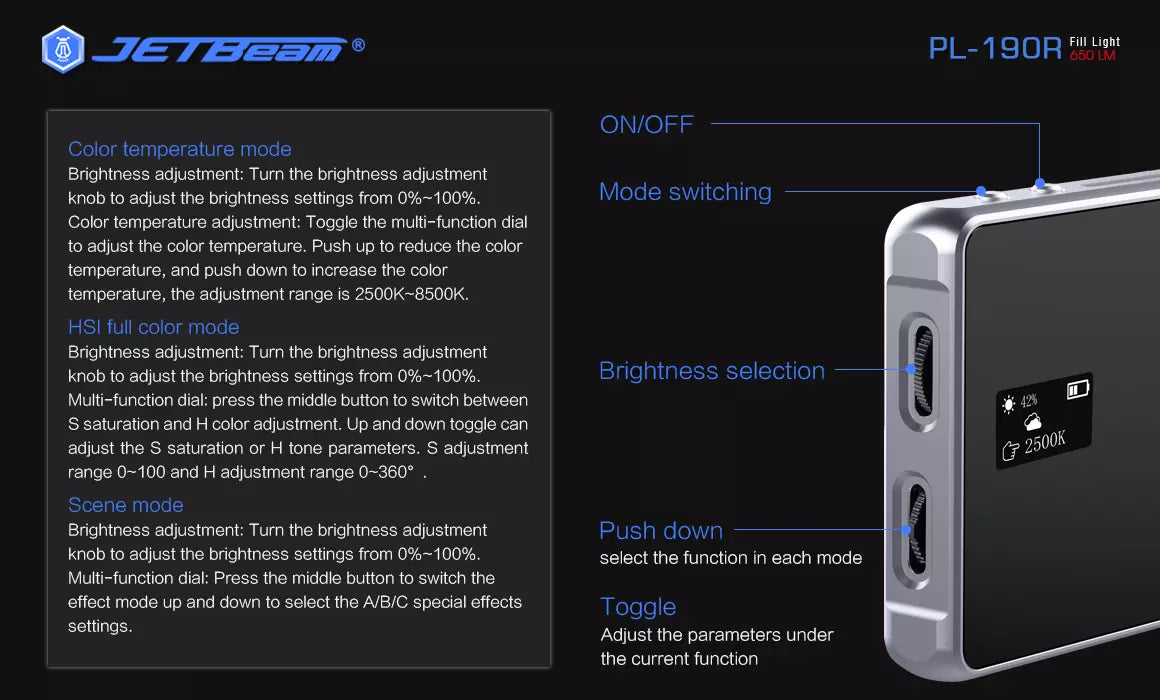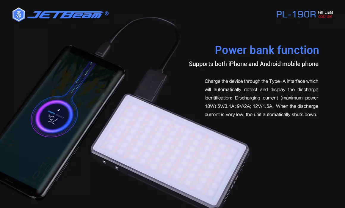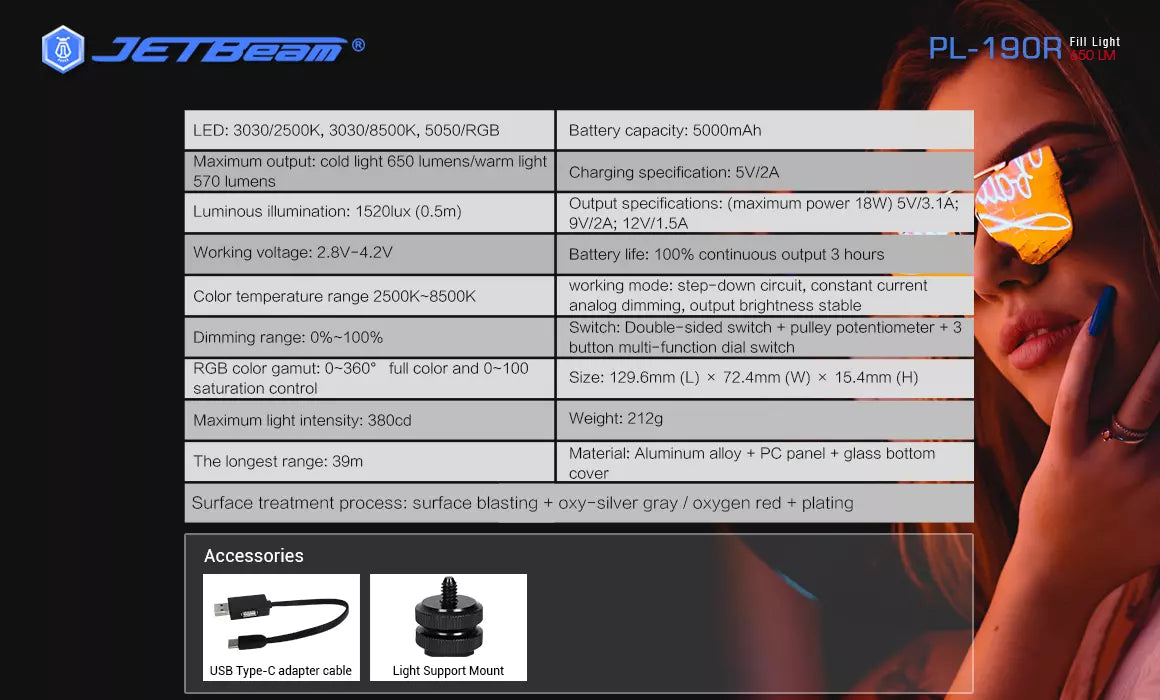 JETBeam PL190R 650 Lumen RGB Full Colour Fill Light