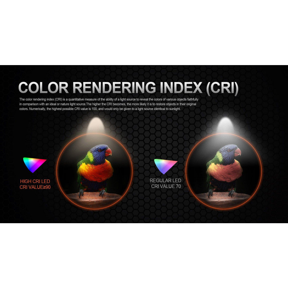 - LED: Nichia 219F LED, High CRI90, Neutral 5000K
