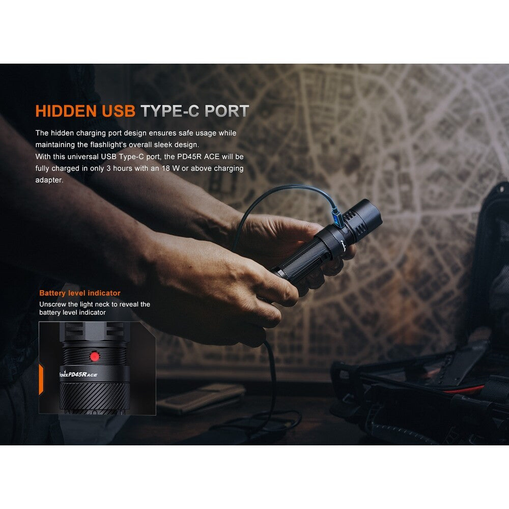 The Fenix PD45R ACE combines powerful illumination with versatile controls and rugged design, making it a dependable tool for tactical operations and outdoor activities.