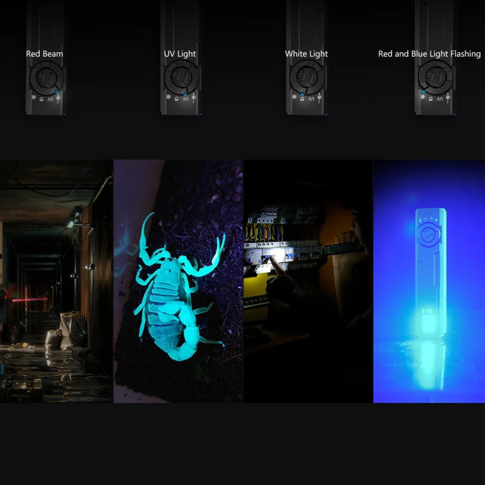 - Utilises latest long range LED, and 1x 365nm, 630mW LED, green laser light, red/blue flashing light.