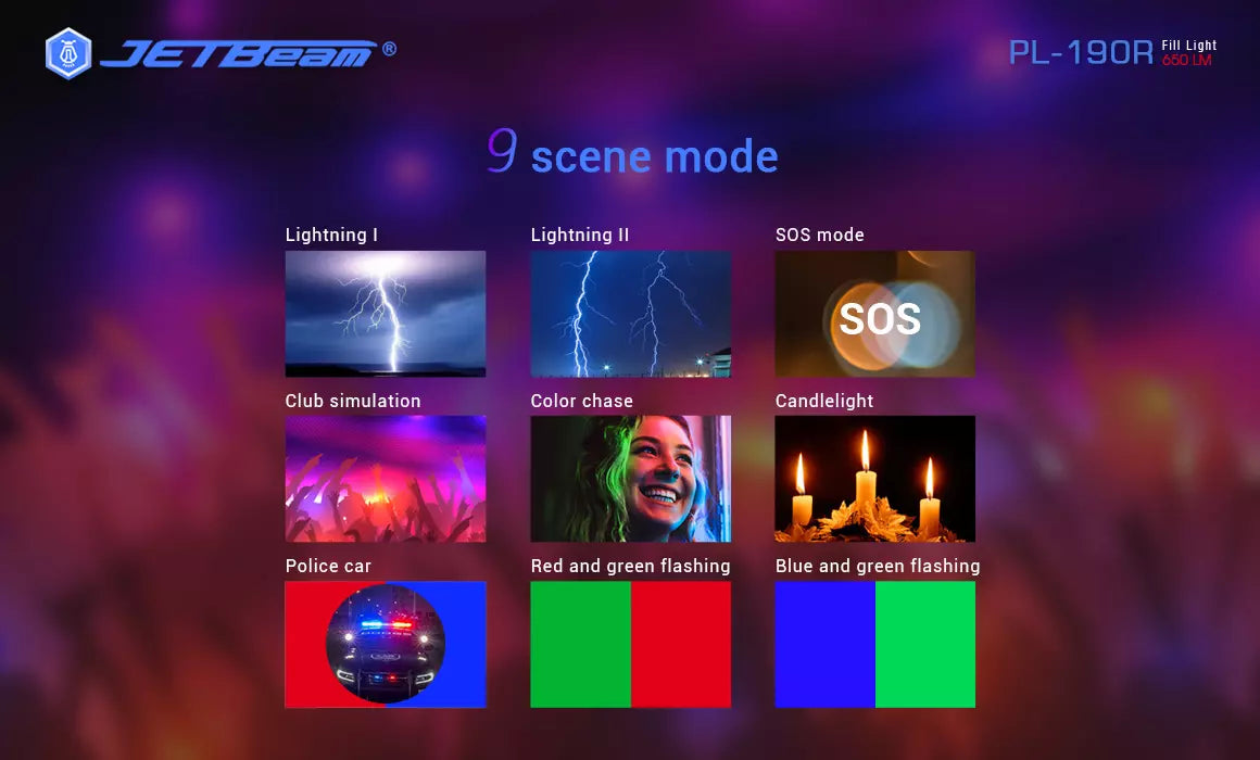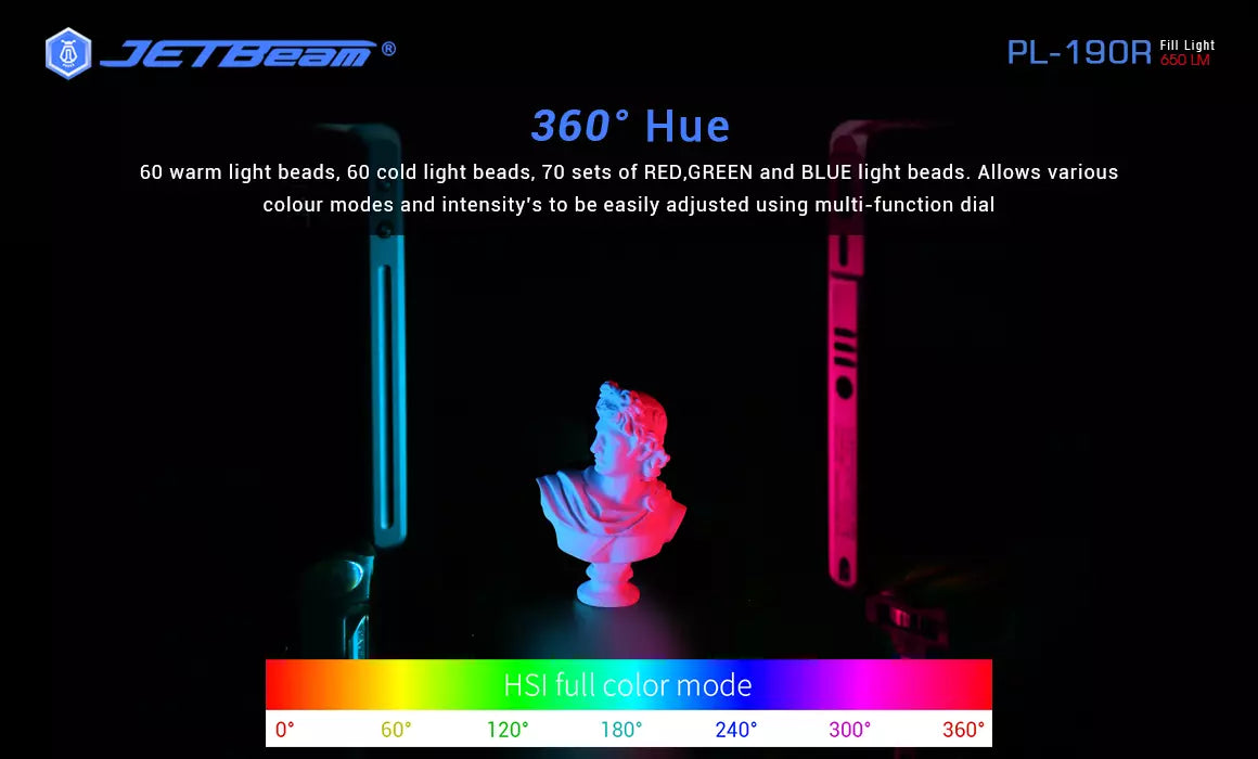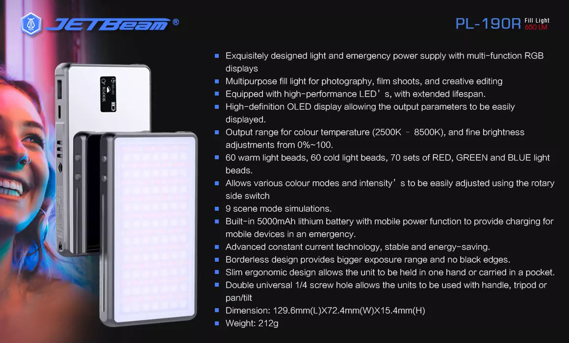 JETBeam PL190R 650 Lumen RGB Full Colour Fill Light