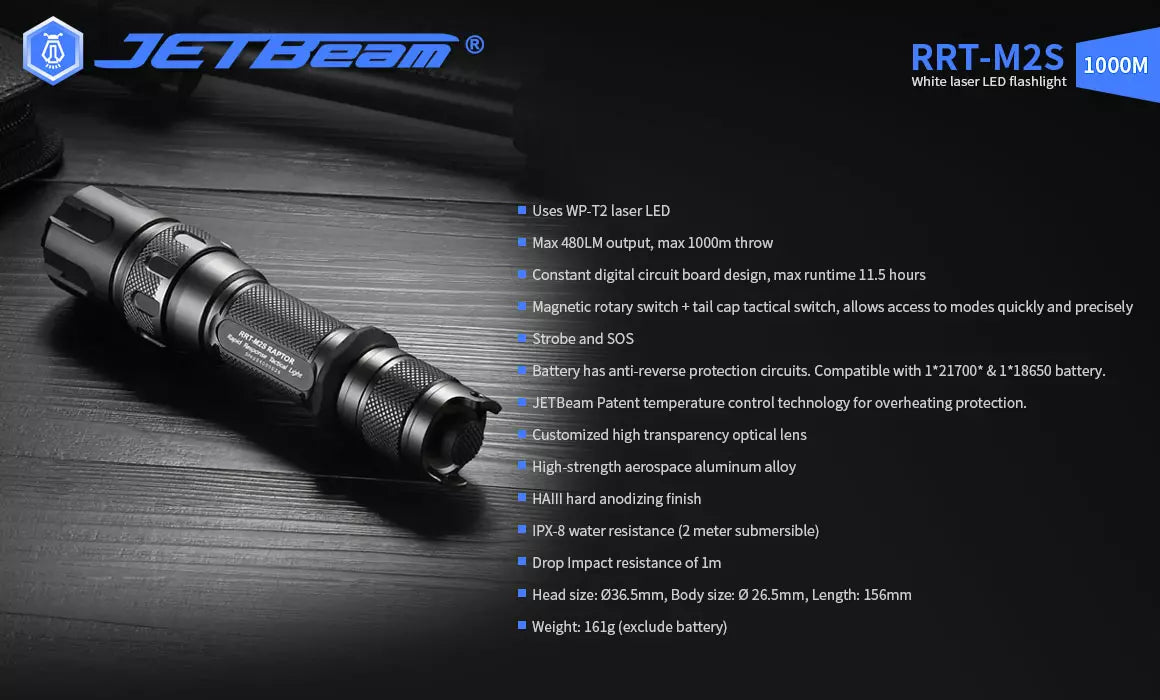 JETBeam Raptor RRT-M2S 480 Lumen LEP Flashlight - 1000 Metres
