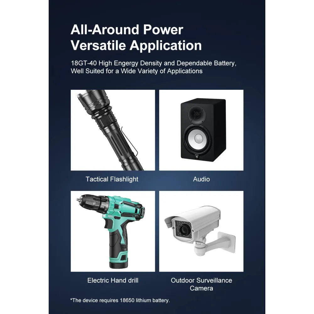 For maximum performance and reliability: The Klarus 18GT-40 4000mAh 18650 rechargeable Li-Ion battery is ideal for the Klarus XT12GT and XT2CR. It is also great for powering other compatible 18650 powered items.