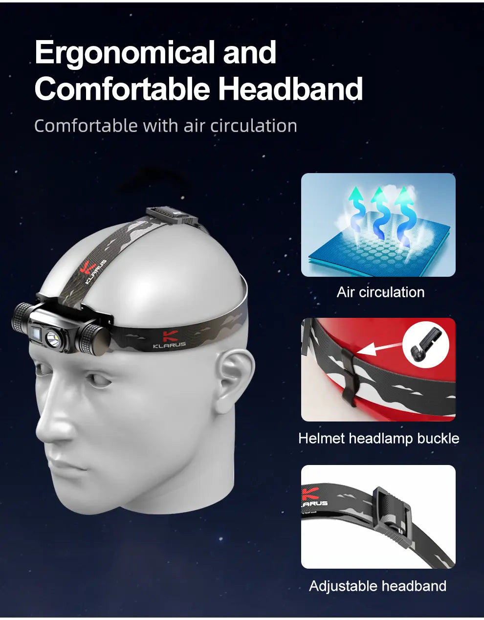 The Klarus HL1 Headlamp is designed to be used in multiple environments and by a wide range of users. The HL1 is extremely lightweight and balanced with its two-strap headband design – ideal for rigorous activities and sports. The headband is constructed from a breathable material and is adjustable in two areas for a perfect fit. The headlamp also comes supplied with four helmet clips to quickly and easily attach the HL1 over a helmet or hard hat.