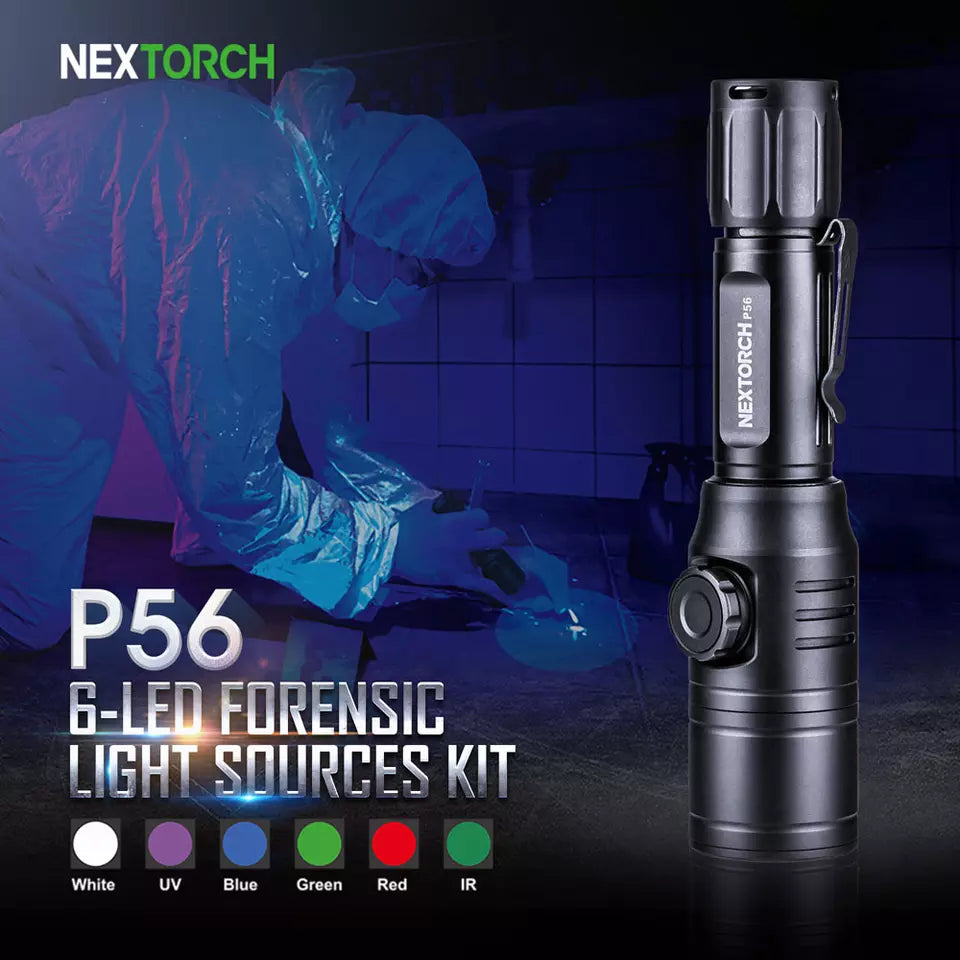 Nextorch P56 is a 6-in1 light source suitable for forensic examination. A multi-functional tail switch allows the different wavelength and brightness modes to be easily accessible with one-hand operation.