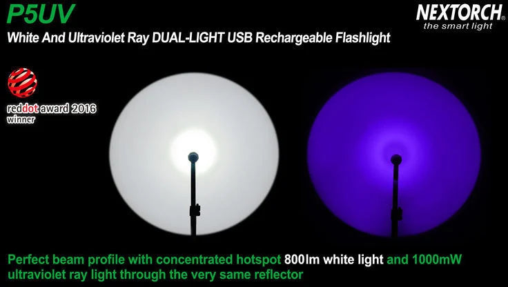 NEXTORCH P5UV Dual Light Flashlight - 800 Lumens and 365nm UV