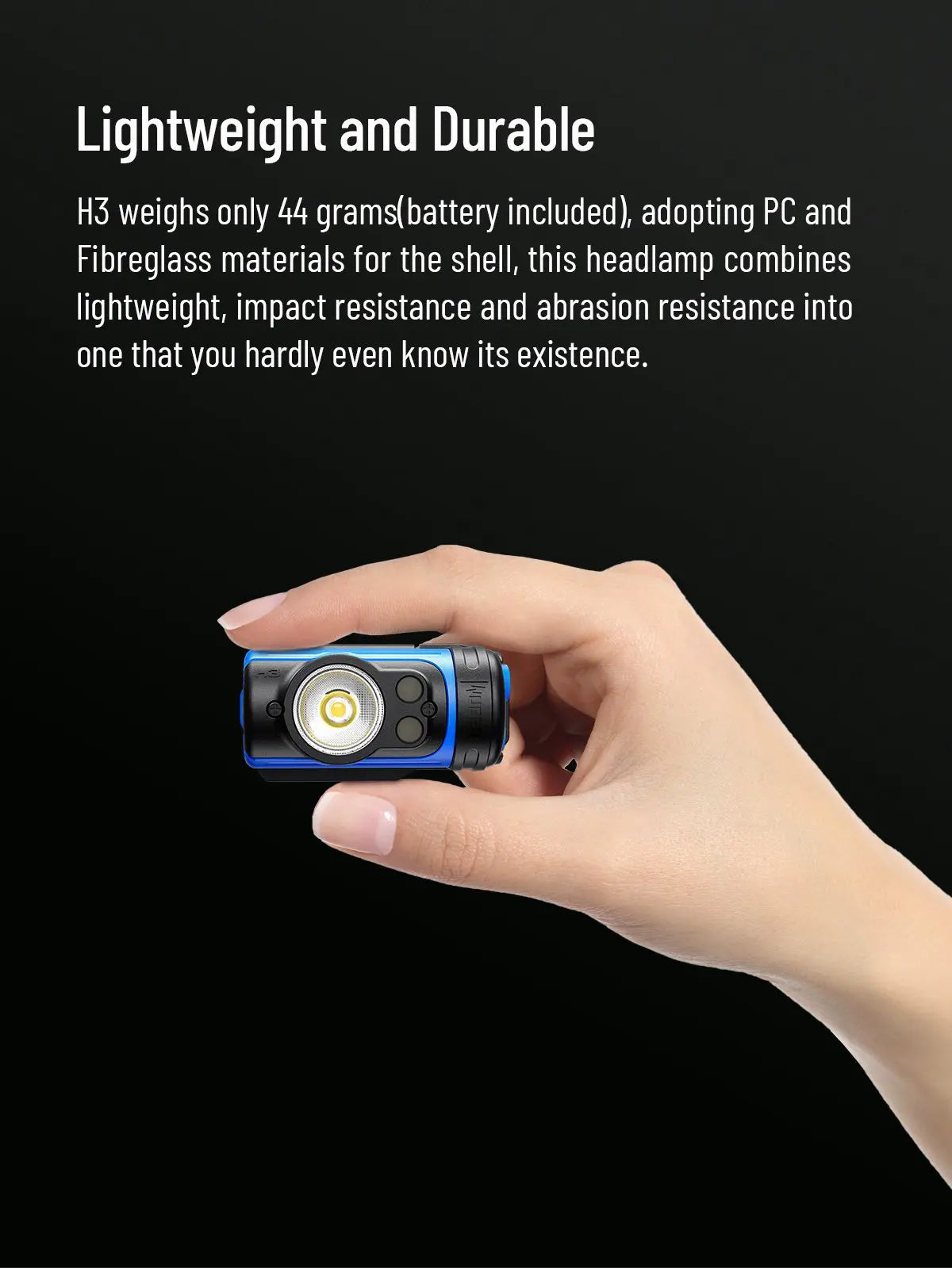- Weighs only 44 grams, Lightweight PC and Fibreglass materials for the shell.