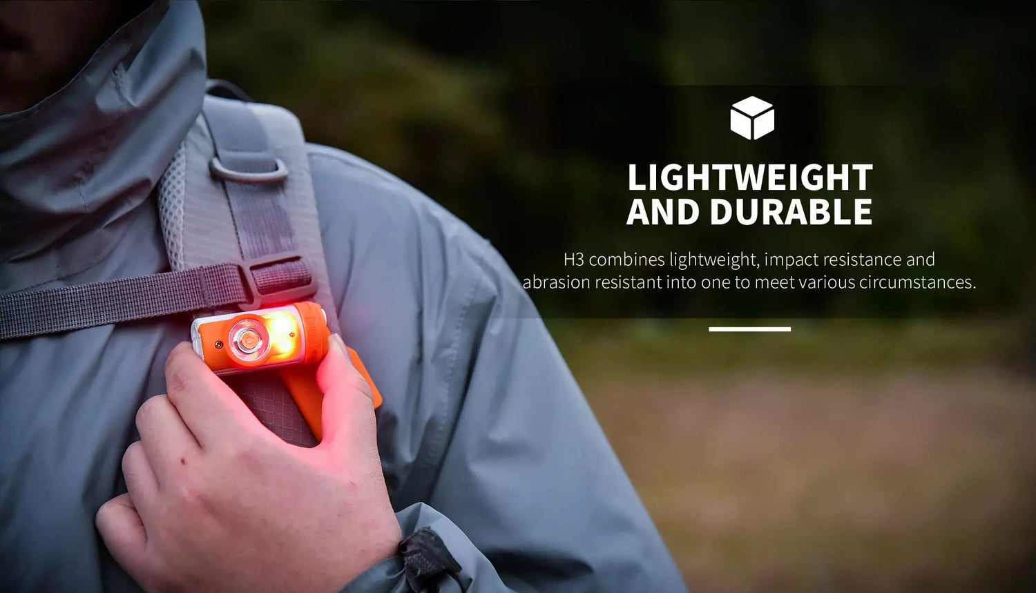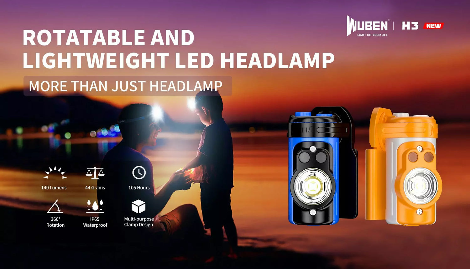 WUBEN H3 is a lightweight, rotatable, headlamp with two rotating shafts. It has an integrated clip, which enables attachment to backpacks, caps, visors, pockets, lapels etc. The main light emits a maximum output of 120 lumens with OSRAM P8 LED bulb; the auxiliary light uses a 2835 SMD LED and possesses red, blue and strobe modes to meet different circumstances.