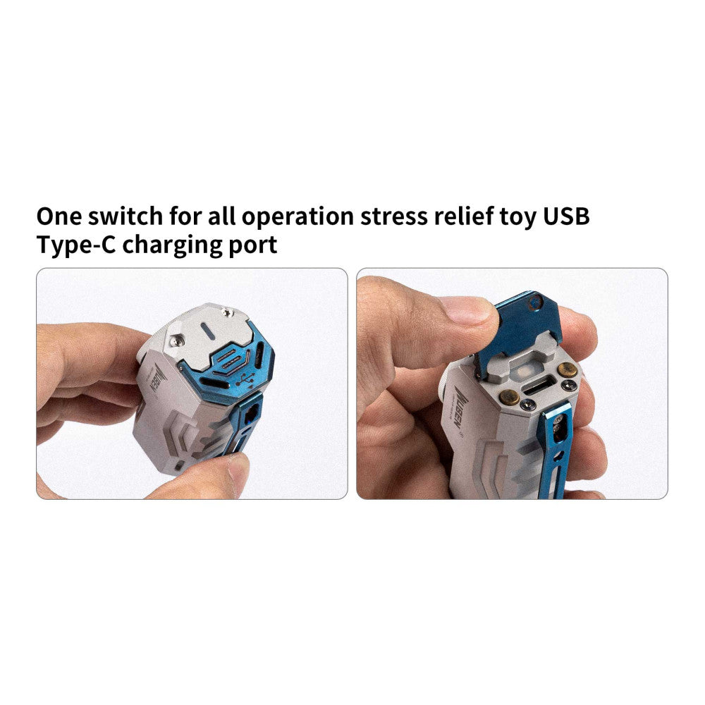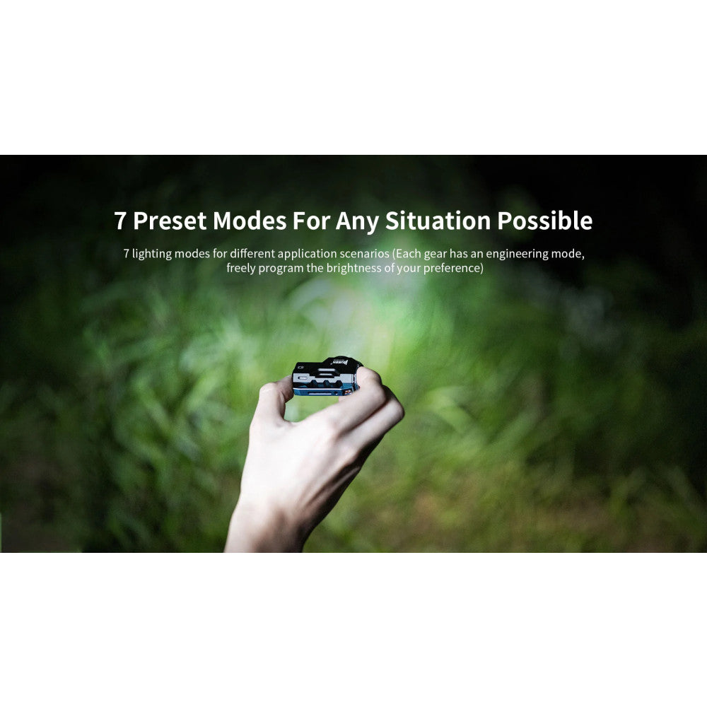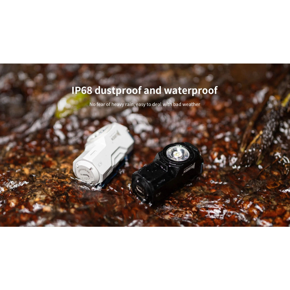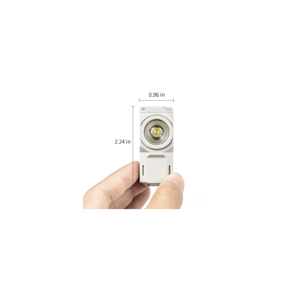 It features a sturdy clip and magnetic tailcap. It also features 8 DIY-Tritium Slots for Customisation. It is powered by a rechargeable Li-ion 18350 battery (included), it can be fully charged in just 1.5 hours and can last up to 130 hours.The innovative 3-in-1 button serves as the operating switch, a fidget device, as well as providing optimal water and dust protection for its type-C USB charging port. This version has a white aluminium casing.