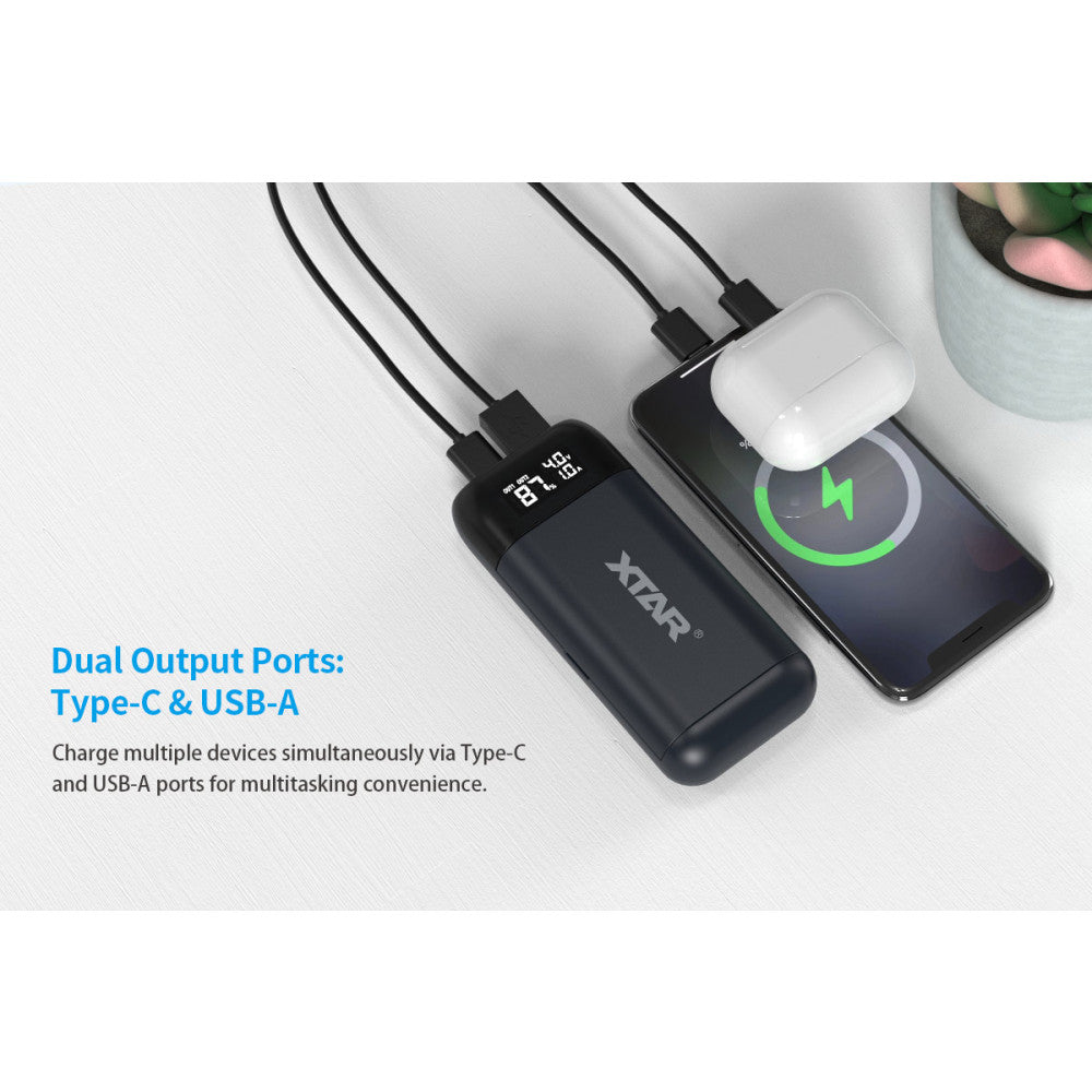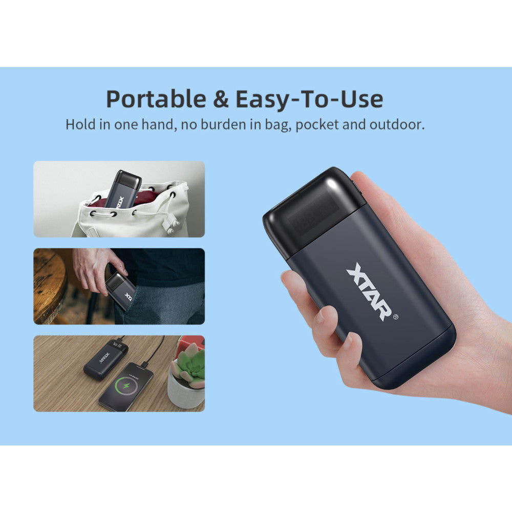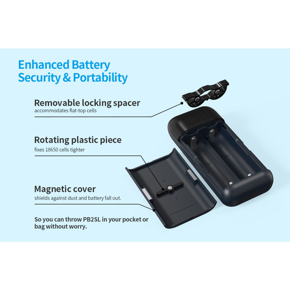 The lightweight, compact, and portable XTAR PB2SL is a Type-C dual-role power bank and fast battery charger (for protected and unprotected 18650 batteries, and protected and unprotected 21700 batteries: 65-78mm). Capable of bringing over-discharged batteries back to life with OV activation.